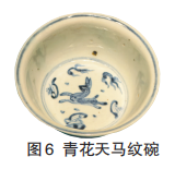 青花天马纹碗(图6)为明代正德年间烧造的外销瓷器。碗呈敞口,中心绘有一匹天马飞奔于祥云与缠枝花卉之间,形象生动,意趣盎然。