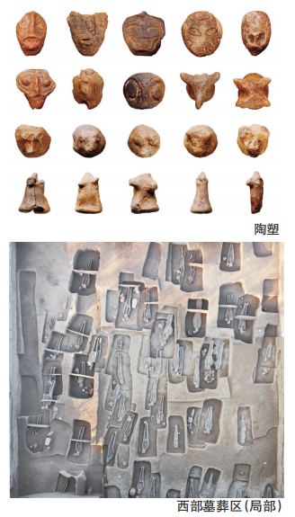 两个墓区尚未完全揭露,其空间关系仍待确认。总体葬式葬俗较为一致,竖穴土坑墓,南向,仰身直肢,陶壶多置于头部西侧,已形成稳定的葬俗。西部墓葬核心区墓圹普遍较大,部分墓葬随葬品丰富,壶、深腹罐、三足钵等陶器多成组出土,另一般多见石磨盘、磨棒、陶鼎、绿松石等,反映出一定程度的社会分化。