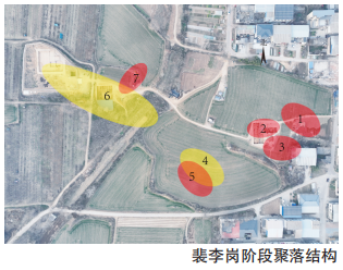裴李岗文化阶段聚落依托岗地分布,整体呈东西向格局,面积约6万平方米。遗址西部断崖下发现古河道,未见壕沟设施;东南部地势低洼,湿地环境可能为聚落提供重要水源。聚落内部可区分为生活区和墓葬区,两者在西南及西部局部重叠。